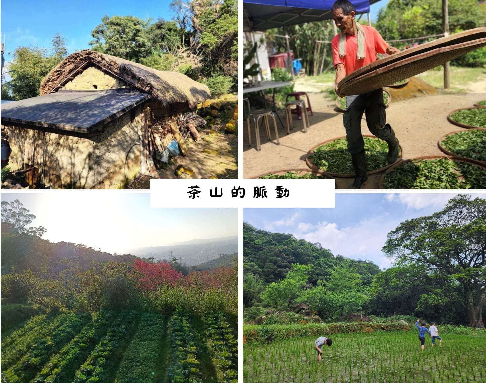 位於深坑炮仔崙、木柵草湳之間的茶山區域,百年古道縱橫、自然山澗交錯。山中有間茅草屋、周圍環繞著友善耕作的茶園、水梯田和菜園,以及山泉水形成的灌溉水路穿梭其中,是一處需要走山路才能抵達的山村;也可說是台灣唯一一處需要爬山才能抵達的茅草屋、水田與茶園的山村。