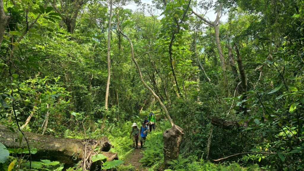 在泰雅族獵徑旁溪水玩,抓魚抓蝦 、玩漂漂河、蓋冷泡池⋯ 午餐在溪邊廟旁,自煮野炊,吃得不亦樂乎,補充物質身健康能量。