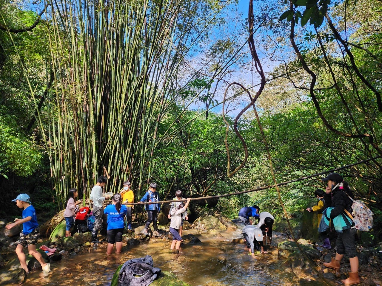 暖暖冬令營的孩子,走在大菁農場週邊的淡蘭路網中,特別受到老天爺眷顧,享受了好多天乾爽的天氣,甚至有幾次還出現久違的陽光,日光照著野溪,伴著孩童的歡笑聲,光芒特別閃亮,也特別溫暖。