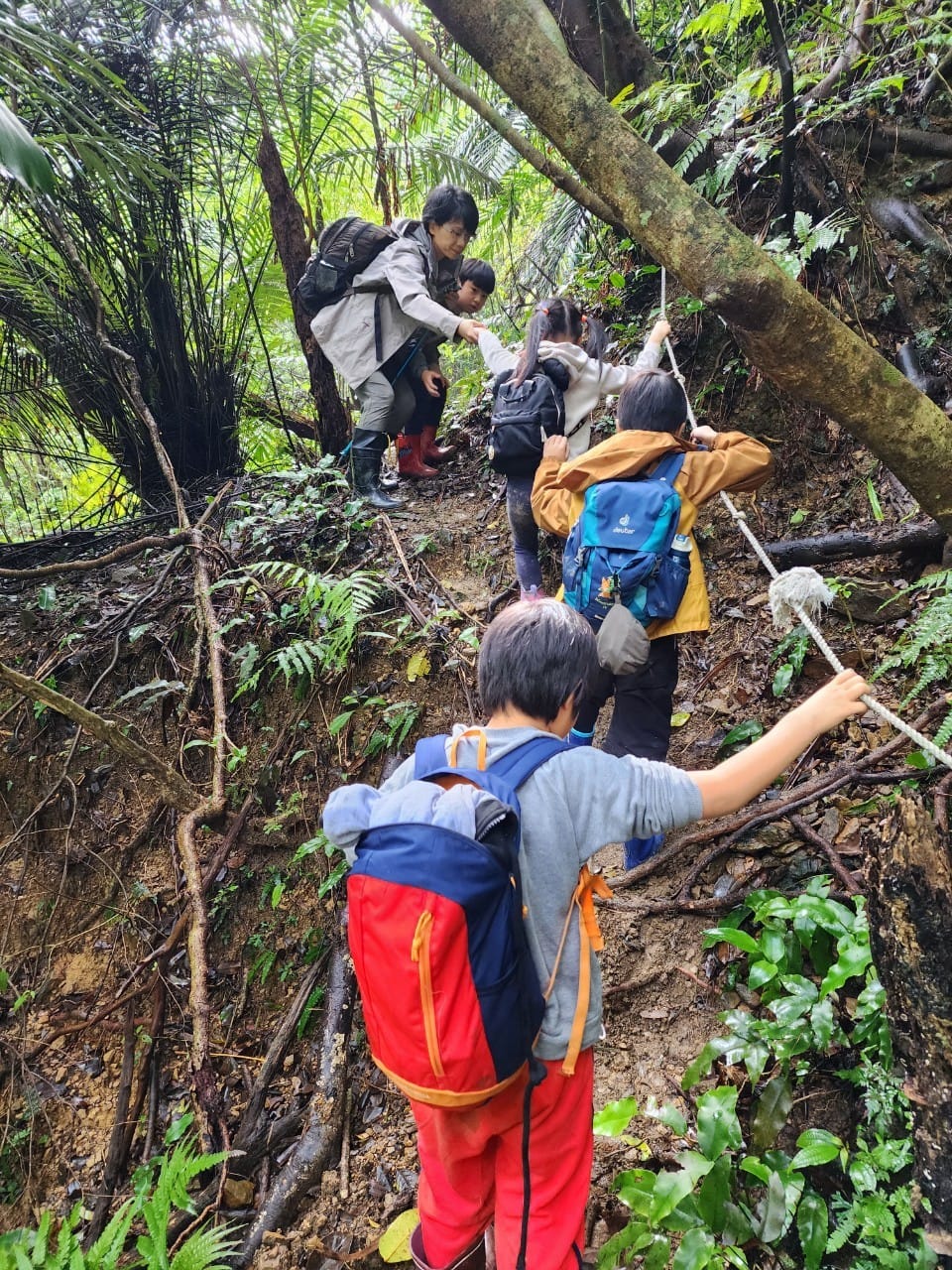 古道上曾經發生過的事蹟,關於岩石、野溪、關於山羌、穿山甲、野豬、大菁、薯榔、關於泰雅、凱達格蘭、漢移民、關於接待他們的農場主人王國緯爺爺……的種種,化為故事,在孩子起走前,先在心中種下圖像。